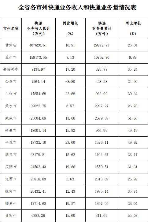 1-7月,邮政行业业务收入累计完成59.97亿元,同比增长11.72%。其中,快递业务收入累计完成40.78亿元同比增长10.91%。